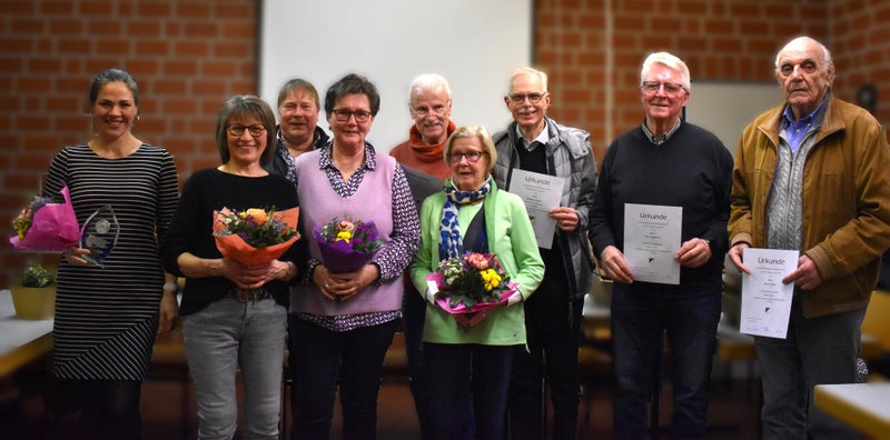 Über 60 Jahre im Verein sind H. Hagenbrock, B. Heising, H.J. Ortmeyer, W. Schwake und H. Venker. Hier hatten wir zudem die große Freude, diese zu Ehrenmitgliedern des VfL Rheda zu ernennen.
