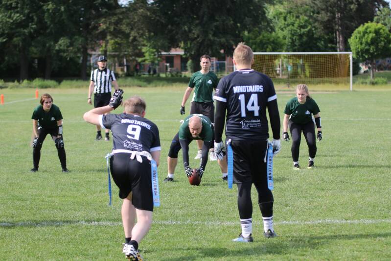 Der zweite Spieltag der Division Ost ereignete sich am 22.05 auf dem Sportplatz Dankersen in Minden. An einem erneut sonnigen und spannenden zweiten Spieltag der Senior Flag League (SFL) trafen wieder die Brilon Lumberjacks, Bielefeld Bulldogs, sowie gastgebenden Minden Wolves auf die V.f.L. Rheda Minotaurs.