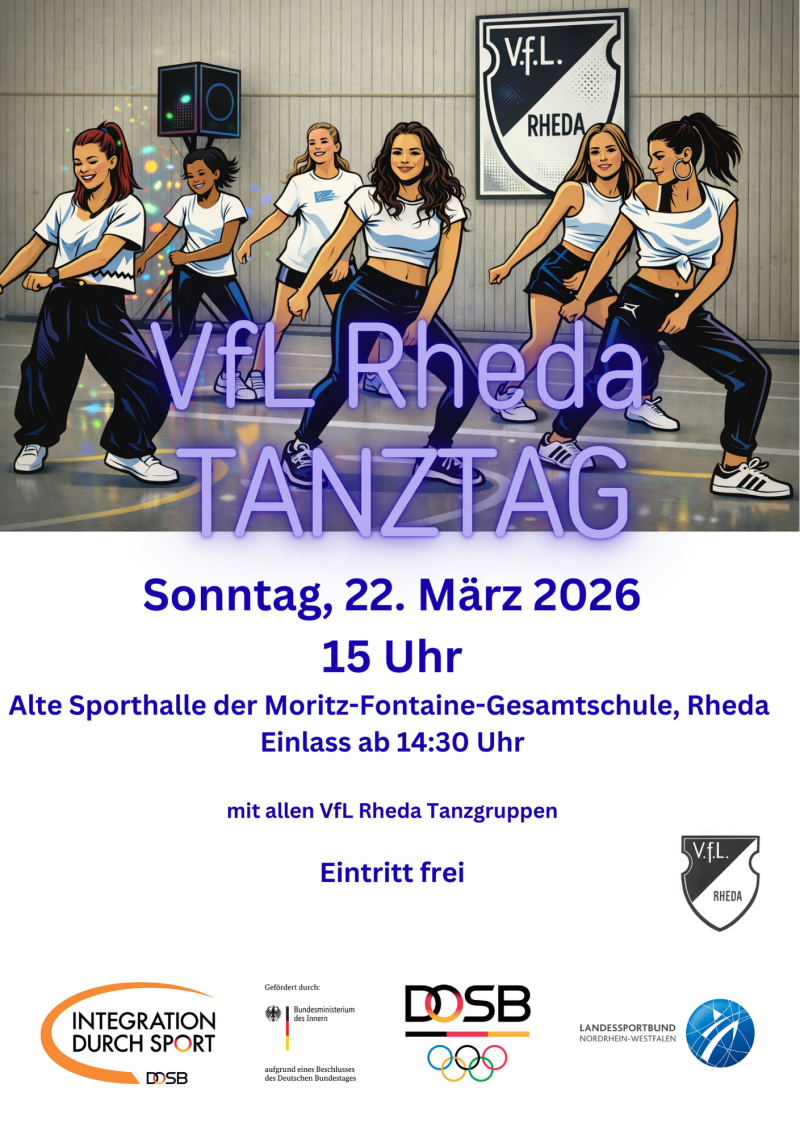 Es war rappelvoll in der Alten Sporthalle der Moritz- Fontaine- Gesamtschule, als 90 Tänzerinnen aus 6 VfL Rheda Tanzgruppen ihre Choreograhien präsentierten. Zum ersten Mal dabei waren die Sweety Dolls, die erst seit Januar von Elena und Nina trainiert werden, und die Latin Dancer von Delia. Außerdem traten die "Glitzer Girls", die kreative Kindertanzgruppe für die Kleinsten ab 4 Jahre auf. die "Dance Girls" und die Gruppe "Black Rose", trainiert von Lena sowie die Jazztanzformation von Martina.